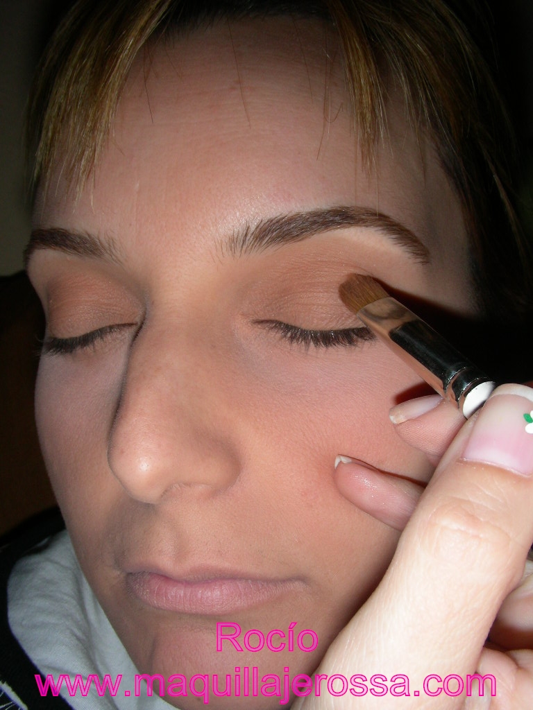 Con la sombra beige, cubre el párpado móvil. Como ves es casi el tono de mi piel, ya que lo que pretendemos es que no destaquen demasiado los ojos.