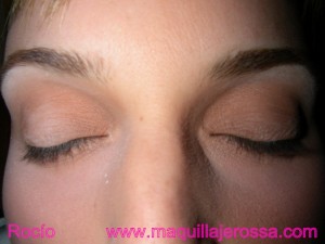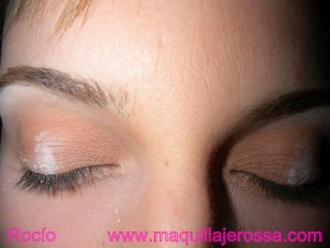 Bajo la ceja pon un poquito de sombra blanca y házlo también en el centro del párpado móvil para crear un pequeño punto de luz. Difumina el centro.