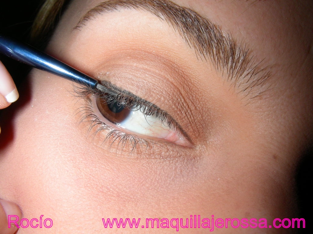 Con eye liner, dibuja en el párpado superior lo más pegado a las pestañas que puedas, una línea muy finita. Abajo no haremos nada, ni siquiera pintaremos el interior. Lo dejamos como está.