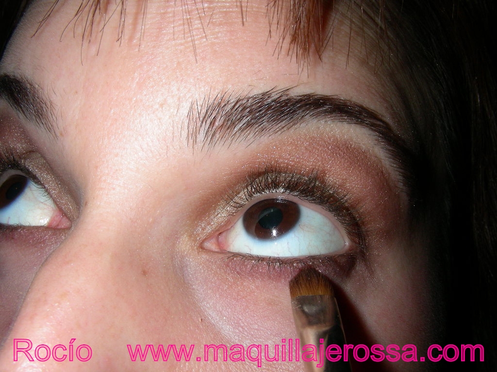 Ahora sí, tras el marrón medio, ponemos el marrón oscuro siguiendo la misma forma de la banana y bajo las pestañas inferiores también el tono más oscuro.