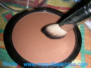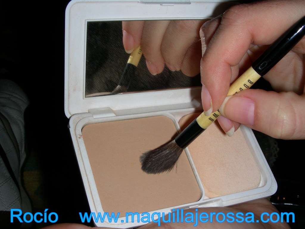 Para matizar y fijar el corrector, con una brocha pequeña, ponemos una capa finita de polvos compactos en la zona.