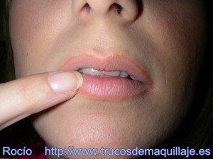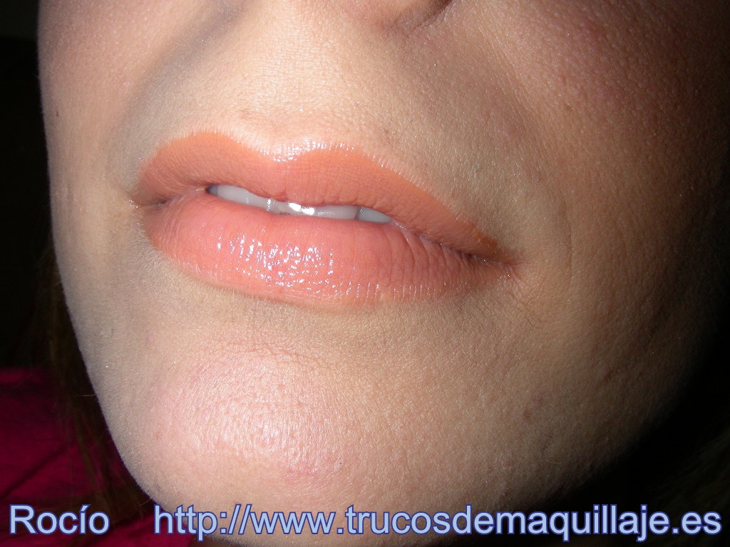 Perfila los labios y difumina la línea con tus dedos hacia el interior de los labios. Aplca un gloss del mismo tono que el perfilador. Es un tono toffe: